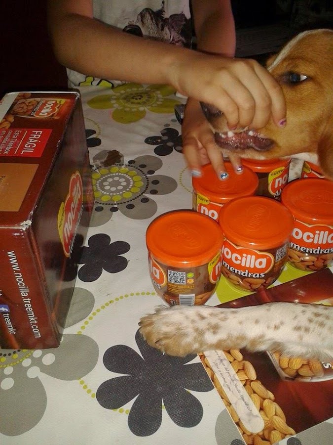 Como veis hasta el perro peleaba por probar la nueva nocilla
