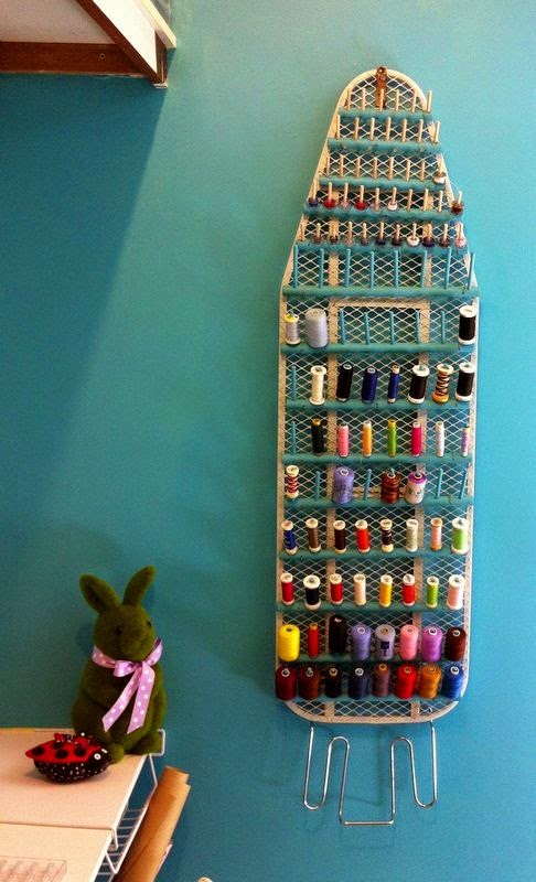 Otra idea que me gustó mucho aprovechando el esqueleto de una vieja tabla de planchar. Y no sólo de esa manera, se me ocurre también colgar unos ganchitos para tener ordenado nuestras cintas, washitapes, etc....