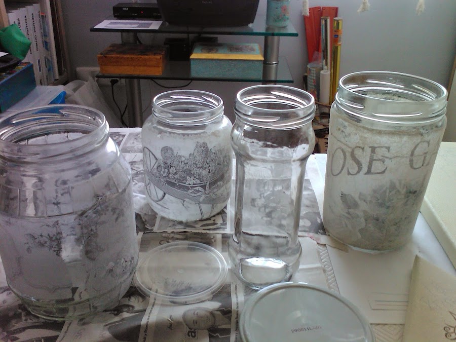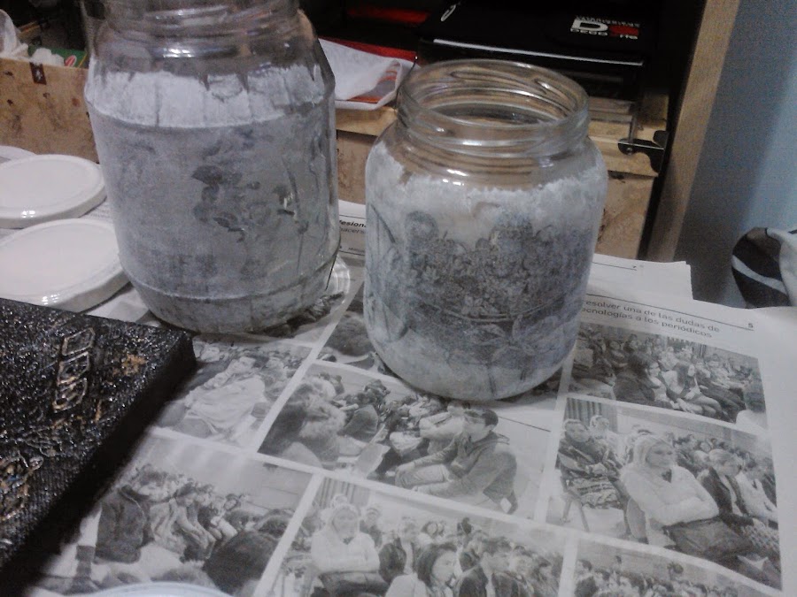 Por lo general los frascos son mis medios de prueba de materiales y como estaba practicando hacer tránsferencias terminé con varios sin saber que hacer con ellos.