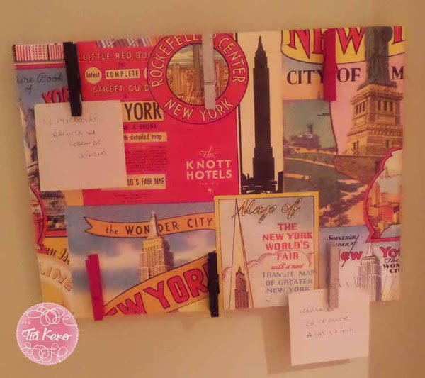 Con una plancha de poliespan, un poco de tela y unas pinzas de la ropa nos quedó un panel de notas de lo más divertido.