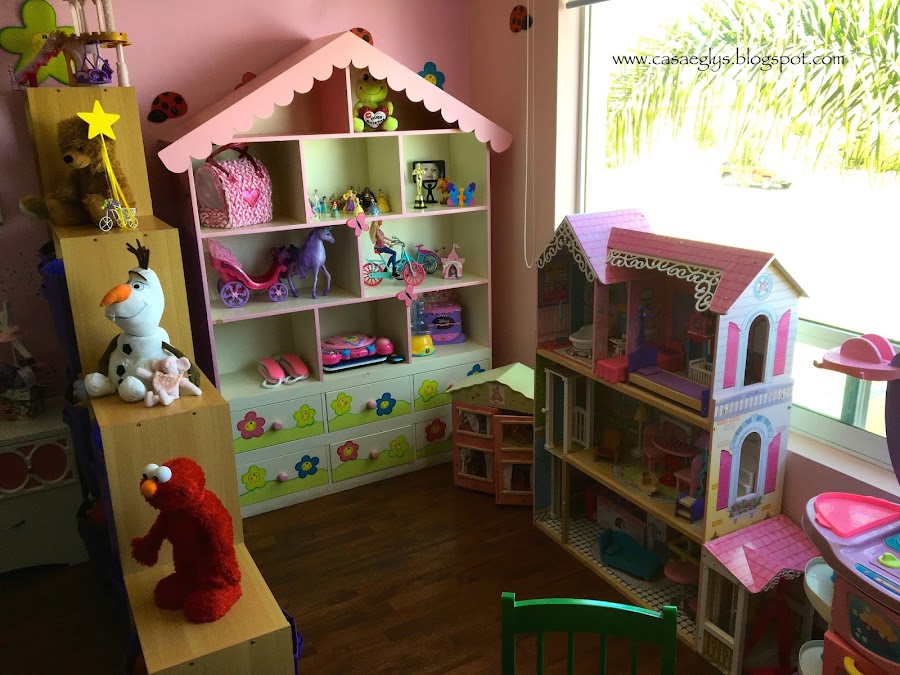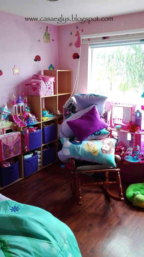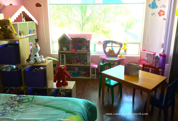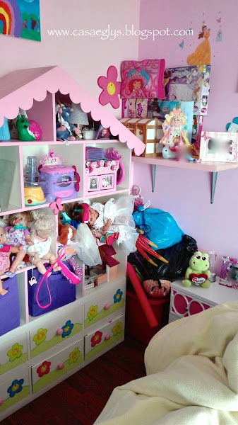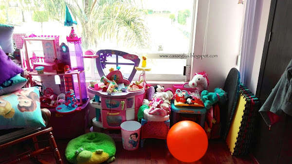 Evidentemente la habitación tenia demasiados juguetes, de los cuales muchos ya eran para edad más pequeña que la niña dueña de esta habitación y otros juguetes no los podia apreciar. Así que con la depuración y la nueva distribución del mobiliario ya tiene un área de juegos prolija y organizada.