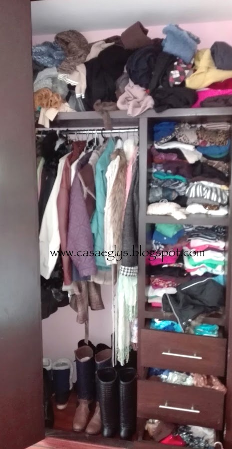 Se vació todo el closet y se depuro la ropa de mami, para que el closet quedará funcional para la niña.