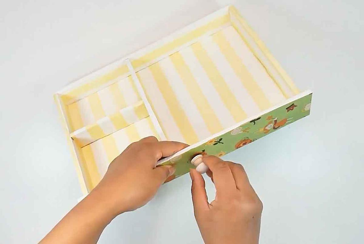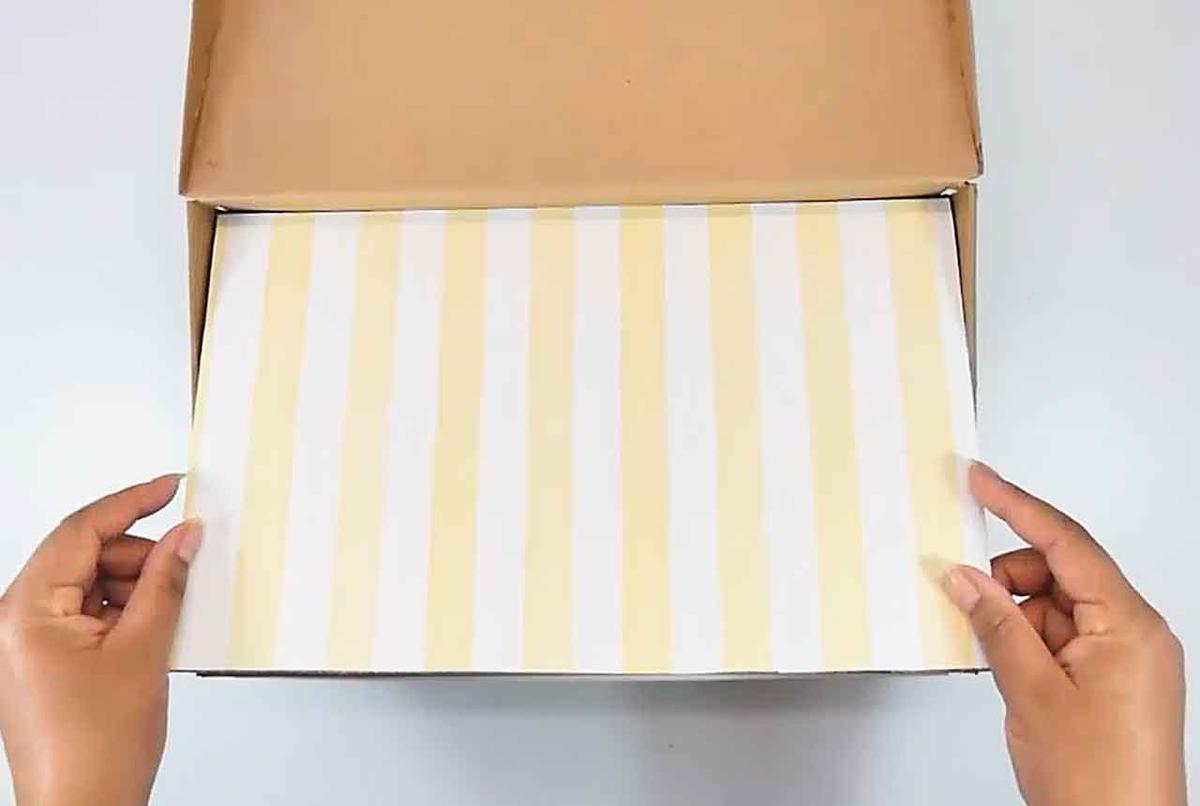 Corta un cartón del tamaño del interior de la caja, para dividir la parte de la gaveta y la parte superior.