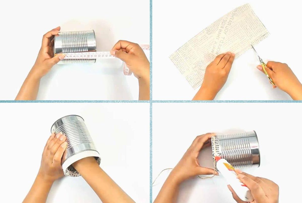 Toma la medida de la altura de la lata y añade 3 cm. Y mide también el contorno de la lata.