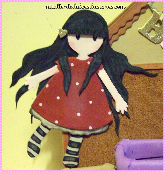 5. Terminar bien vuestras cajitas como siempre os digo,poner alguna tira de goma eva,quedaran mucho más bonitas.Pues ahora vamos a dibujar nueatra Gorjuss,en mi caso yo la he dibujado os voy a dejar el dibujo de lamía pero si queréis otro modelo podéis buscar el que más os guste e imprimirlo.Sólo tendréis que hacer como si fuese un puzzle,cortáis el cuepecito de goma eva color carne,el vestido de otro color,el pelo,todas las piezas en goma eva y montarlo y pegarlo como si fuese un puzzle,es muy sencillo,y si en vez de una Gorjuss queréis otro dibujo pues lo mismo.