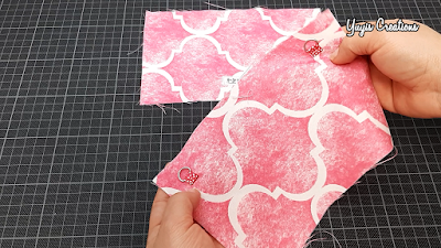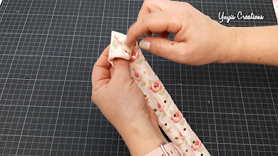 Damos la vuelta, planchamos y reservamos. Recuerda hacer esto con ambas piezas. Vamos ahora con las dos piezas de 12x25 cm. Hacemos lo mismo, doblamos con el revés a la vista de manera que nos quede una medida de 25x6 cm. Y cosemos por el borde en forma de L, es decir, por el lado más largo y por uno de los lados más corto.