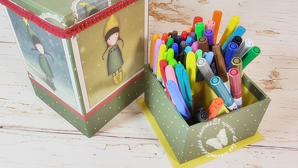 Tengo unos papeles de las Gorjuss que tenía ganas de volver a usar, así que esta es mi cajita.