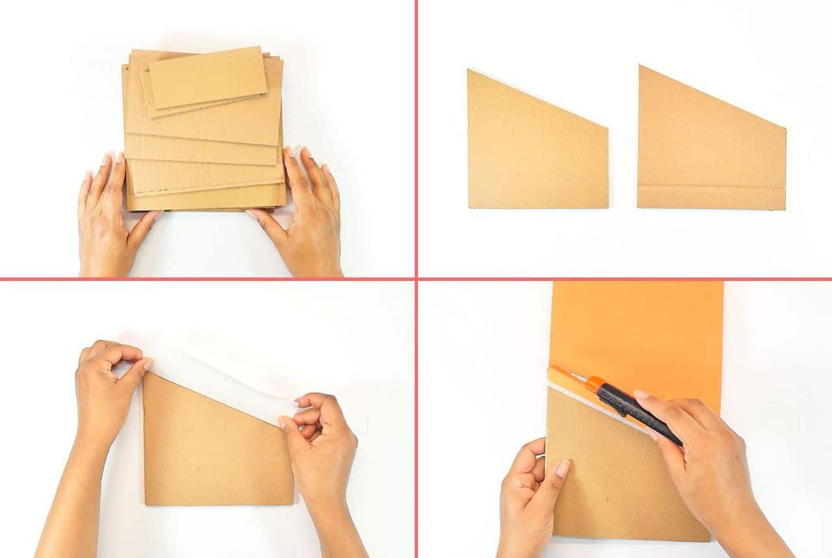 Forrar sólo una de las caras de las piezas inclinadas más grandes con cartulina.
