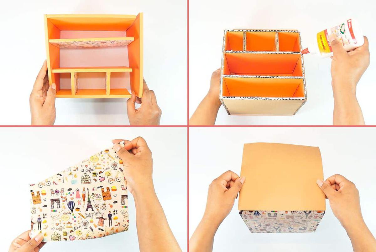 Cada vez tenemos más cosas en el escritorio y nos queda poco espacio para trabajar, por eso hoy te muestro cómo puedes hacer tu propio organizador de escritorio con cartón, sencillo y práctico.