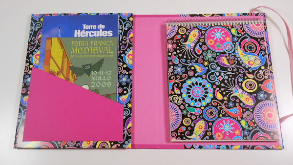 Se trata de un organizador de escritorio. Por un lado tenemos una libreta, donde podemos escribir todas las cosas que necesitamos no olvidad y tener siempre presente. Por otro lado tenemos un bolsillo donde poder colocar folletos o tickets.