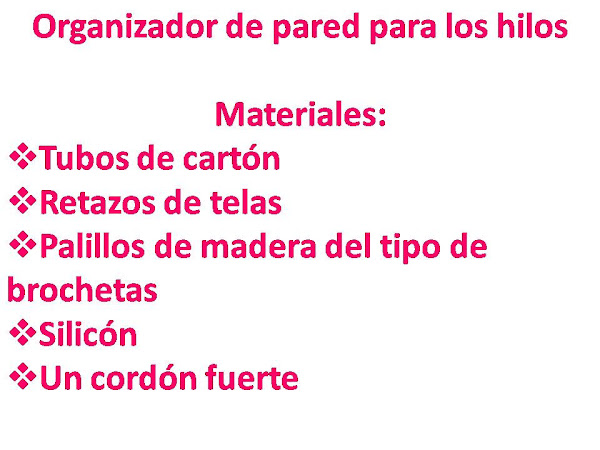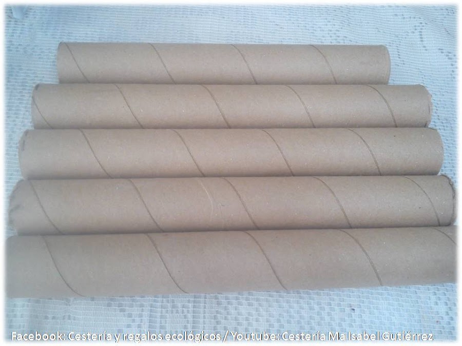 Podemos utilizar tubos de cartón de todo tipo, pueden ser de los que vienen con las servilletas de papel de la cocina, del papel aluminio, o donde vienen enrolladas las telas, generalmente las tiendas desechan o regalan estos tubos de cartón. Lo único que se necesita es que el cartón sea firme. Cortamos los tubos de cartón de un mismo largo, en este caso miden 30 cms., cada uno, a excepción del de arriba de la imagen que es un poco mas pequeño, podemos utilizar tantos tubos como grande deseamos el organizador...