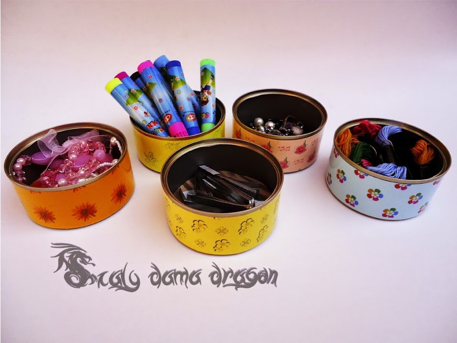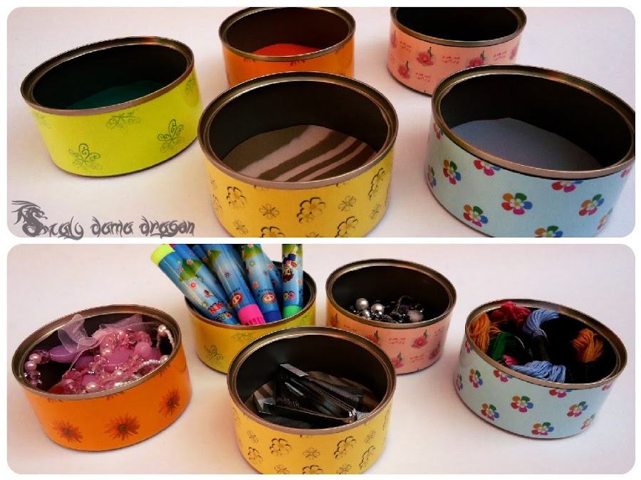 Hola, mis Dragoncill@s esta semana les traigo otra manualidad de reciclaje muy económica de hacer y practica, se trata de un organizador de latas de atún. las puedes colocar en tu oficina y rellenarlas de materiales de la misma oficina valga la redundancia, o en tu habitación le hechas tus pulseras o aretes, yo deje 2 para mi taller de manualidades y las otras las coloque en mi habitación y quedaron Geniales.
