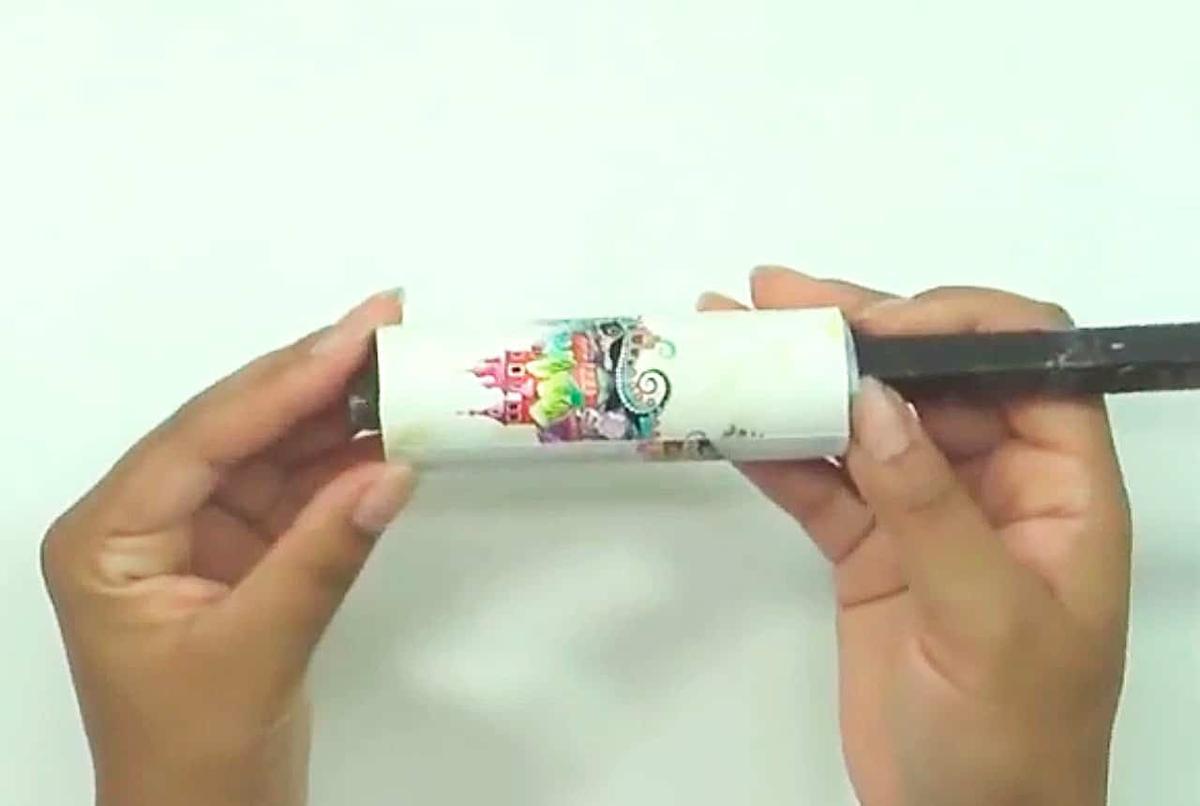 Para finalizar forra un tapa con el mismo papel que el resto y pégala en la parte superior con silicona caliente.
