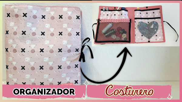 Te lo puedes llevar de viaje, o simplemente mantén en casa tus materiales organizados y a la mano en un sólo lugar. Este organizador tiene varios bolsillos o compartimentos, dos de ellos con separaciones para guardar hilos, un cortahílos, una tijera pequeña etc.