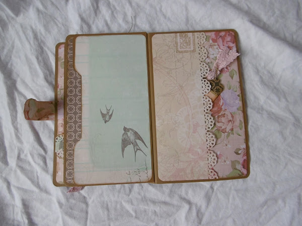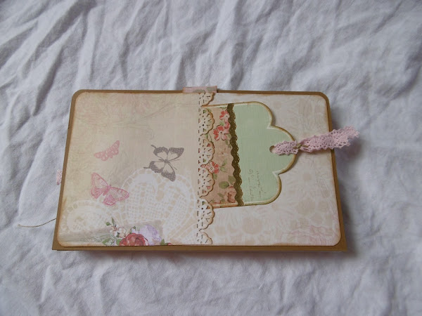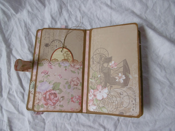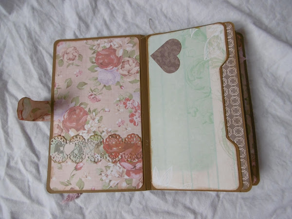 Como os decía con el mismo pack de papeles hice dos organizadores de carpetillas, este que os muestro es el primero: cierre con imán y un adorno sencillo en la portada, no pegado del todo para poder enganchar un papel si es necesario.