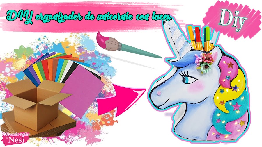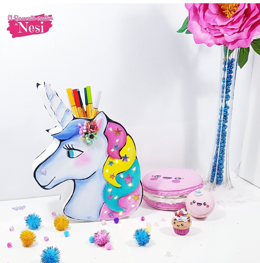 Pues bien como a mi me encantan los unicornios y además las cosas útiles y prácticas, he realizado este organizador con luces, con la forma de la cabeza de un bonito unicornio.