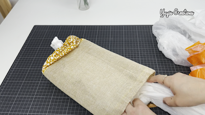Empezamos uniendo las dos piezas de tela, enfrentando sus derechos. Si usas una sola pieza de tela este paso lo debes saltar.