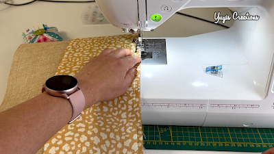 Hecho esto, doblamos por los lados medio centímetro y cosemos solo un espacio de 5 cm, así como te muestro en la imagen de abajo. Esto mismo lo hacemos en los 4 lados.