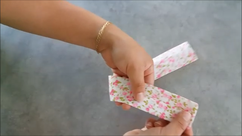 Un patrón que haremos nosotras mismas dibujando en un trozo de papel un rectángulo de 34 x 14 cm. Este rectángulo lo doblaremos por la mitad a lo largo y redondearemos uno de sus extremos, de manera que nos quede ovalado, de esta forma: