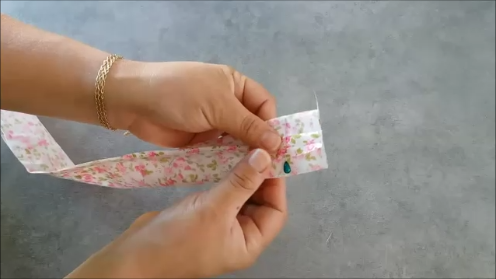 La tira nos va a quedar así, con la costura en medio, de esta forma se mantendrá oculta cuando hagamos las trabillas