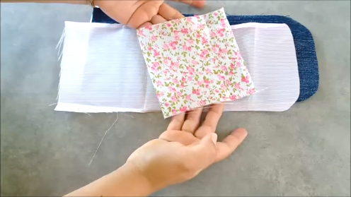 3. Una pieza de 14 x 14 cm para hacer un bolsillo: yo he usado un estampado diferente.