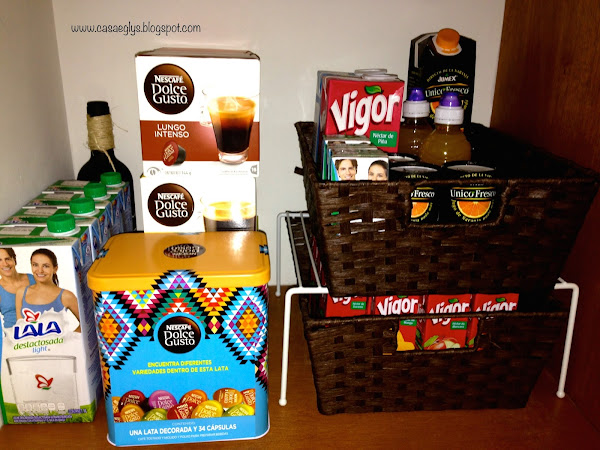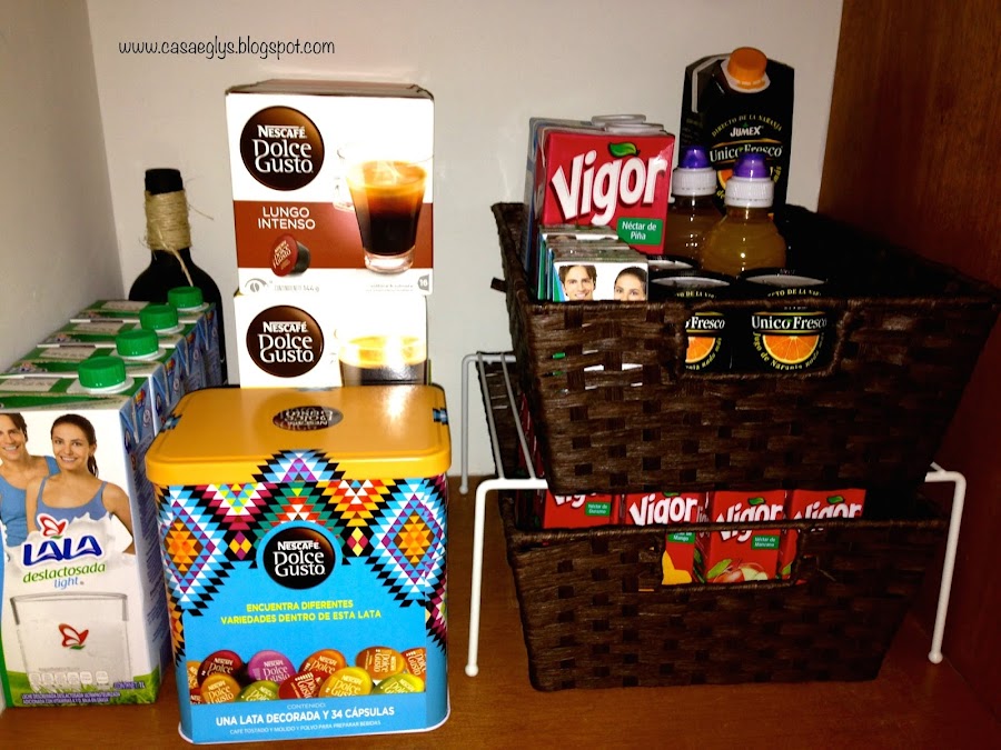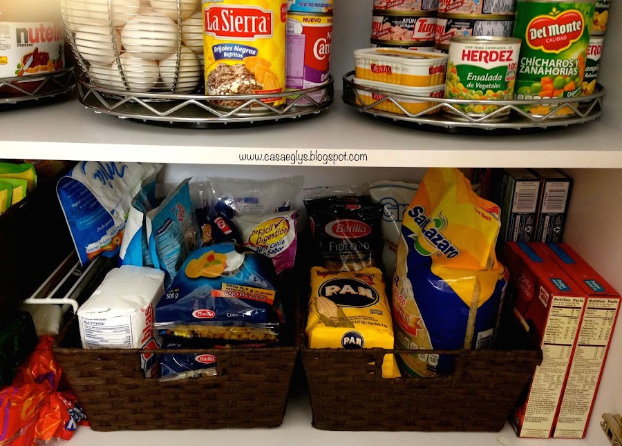 En la cocina, la utilizamos en la despensa y en los gabinetes para organizar comidas y bebidas. También tenemos una cesta con las medicinas y vitaminas de uso diario.