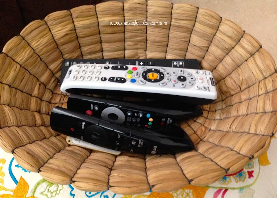Y por ultimo, pero no menos importante una pequeña cesta con los controles de los aparatos eléctricos del family-room. No se ustedes pero yo no puedo ver un control por allí mal puesto en el posa brazo de un sofa por ejemplo, jajaja!