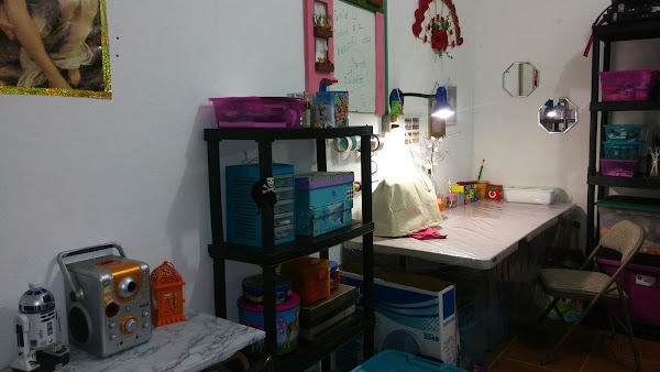 mis muebles son estantes de plástico que podemos encontrar en cualquier supermercado, son económicos y también cumplen muy bien su función.