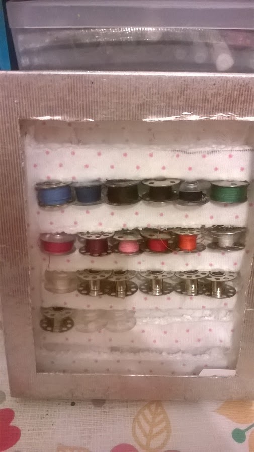 utilizo cajas de cartón para organizar mis hilos