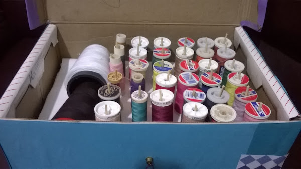 Primero que nada quiero decir que la idea tan maravillosa es del blog de momita, el paso a paso lo tiene ella en este enlace http://momitablog.com/2012/05/09/diy-bobbin-organizer/ Aquí mi humilde replica que no pretende mucho más que mostrar que organizarse no tiene que ver con dinero, la única mejora que he hecho a la caja de cartón es agregarle un hueco a la tapa y ponerle un acetato para poder ...