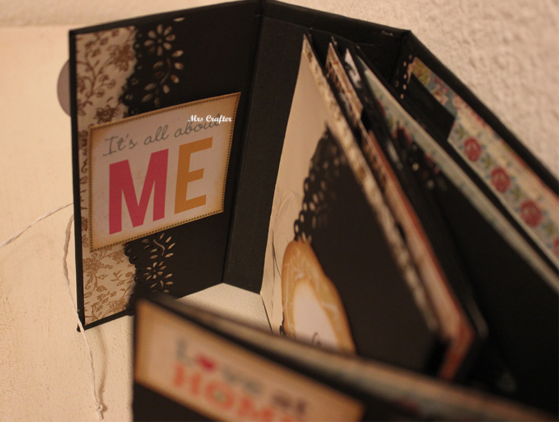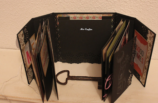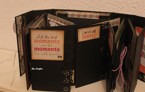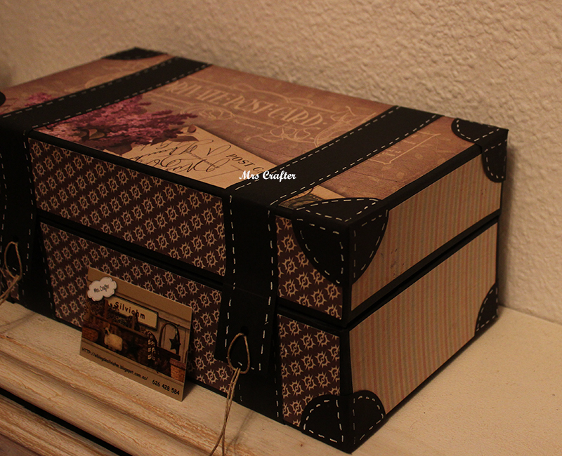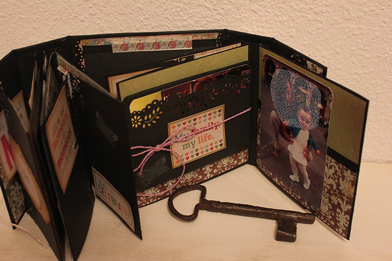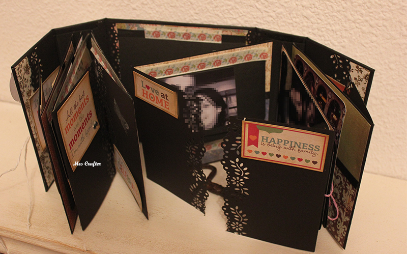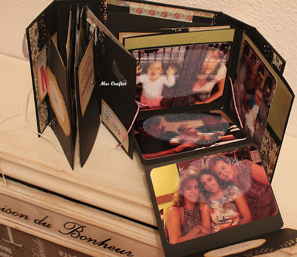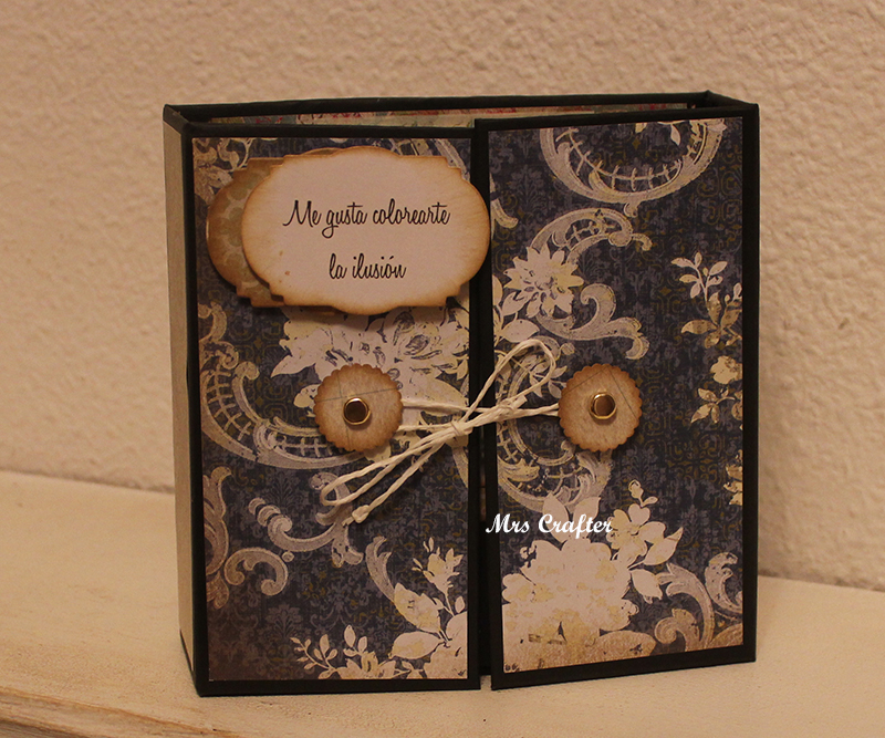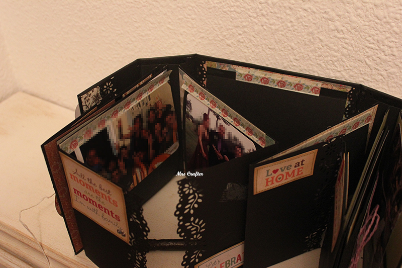 También un álbun armario, estilo vintage, su favorito, donde colocamos un montón de fotos, cada una con una frase de sus familiares y tarjetas añadidas por mi alusivas a la familia, el tema principal. Hubo que poner mucho desplegable para poder colocarlas todas.Y algún detalle más que fue dentro de la maleta, como una etiqueta con una frase muy concreta y un díptico con unas palabras de sus cuñados.