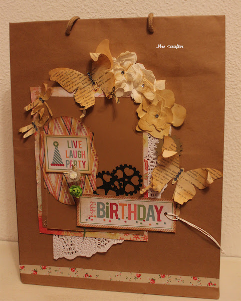 Este domingo Ch. cumplía años.Su familia se puso en contacto conmigo, querían prepararle una fiesta sorpresa y tenían varias ideas que querín ofrecerle. primero pensaron en una caja, que al final fue maleta, donde guardar un diploma en el que su familia le dirigía unas palabras, que me han dicho le emocionaron.Utilice un pergamino y trasladé sus pensamientos a él.Además, birrete y banda de graduación, algo simbólico, éstos dentro de una bolsa de papel kraft, decorada con técnicas de scrap.