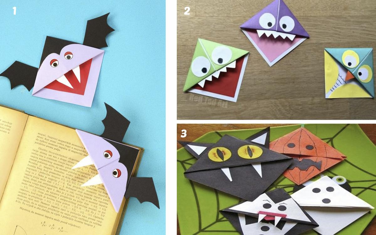 Los niños son sin duda uno de los públicos que más disfruta realizando figuras de origami para Halloween. Alguna actividad divertida que podemos realizar con esta técnica, son los marcadores de esquina caracterizados con personajes y motivos típicos de Halloween.