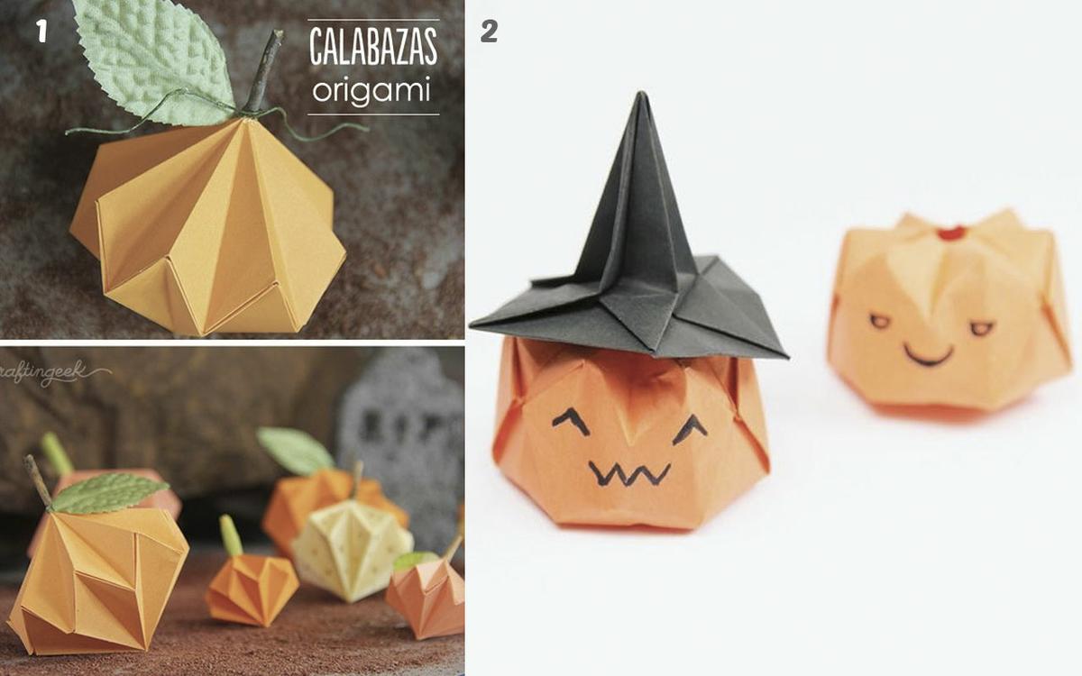 Las calabazas quedarán muy bien si les añadimos volumen con la técnica del origami y como ves existen distintas formas de realizar calabazas que pueden ser muy chulas para éste Halloween.