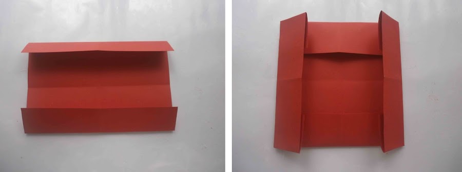 Ahora con la cartulina abierta le hice dos dobleces una a cada lado y también por los otros dos que quedan.
