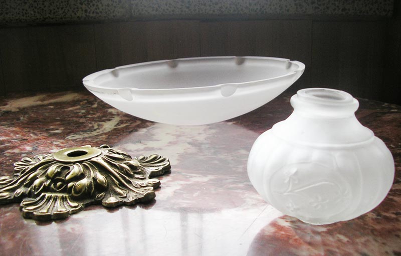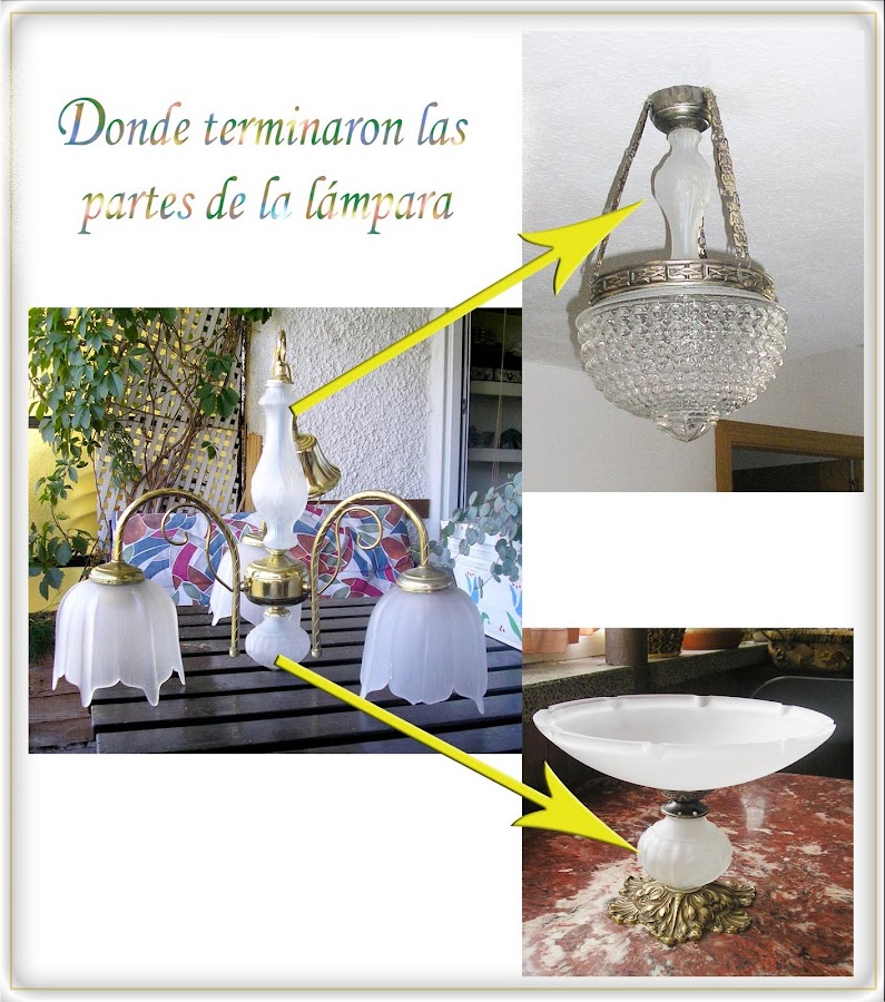Y con la bola y otro plaflón también con un origen dudoso, me he hecho este , no sé como llamarlo, ¿frutero victoriano o rococó?