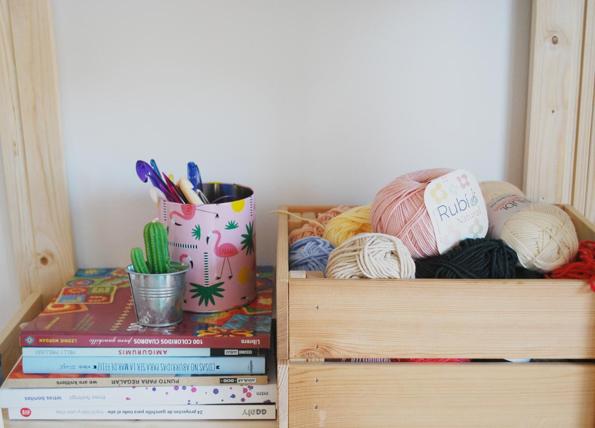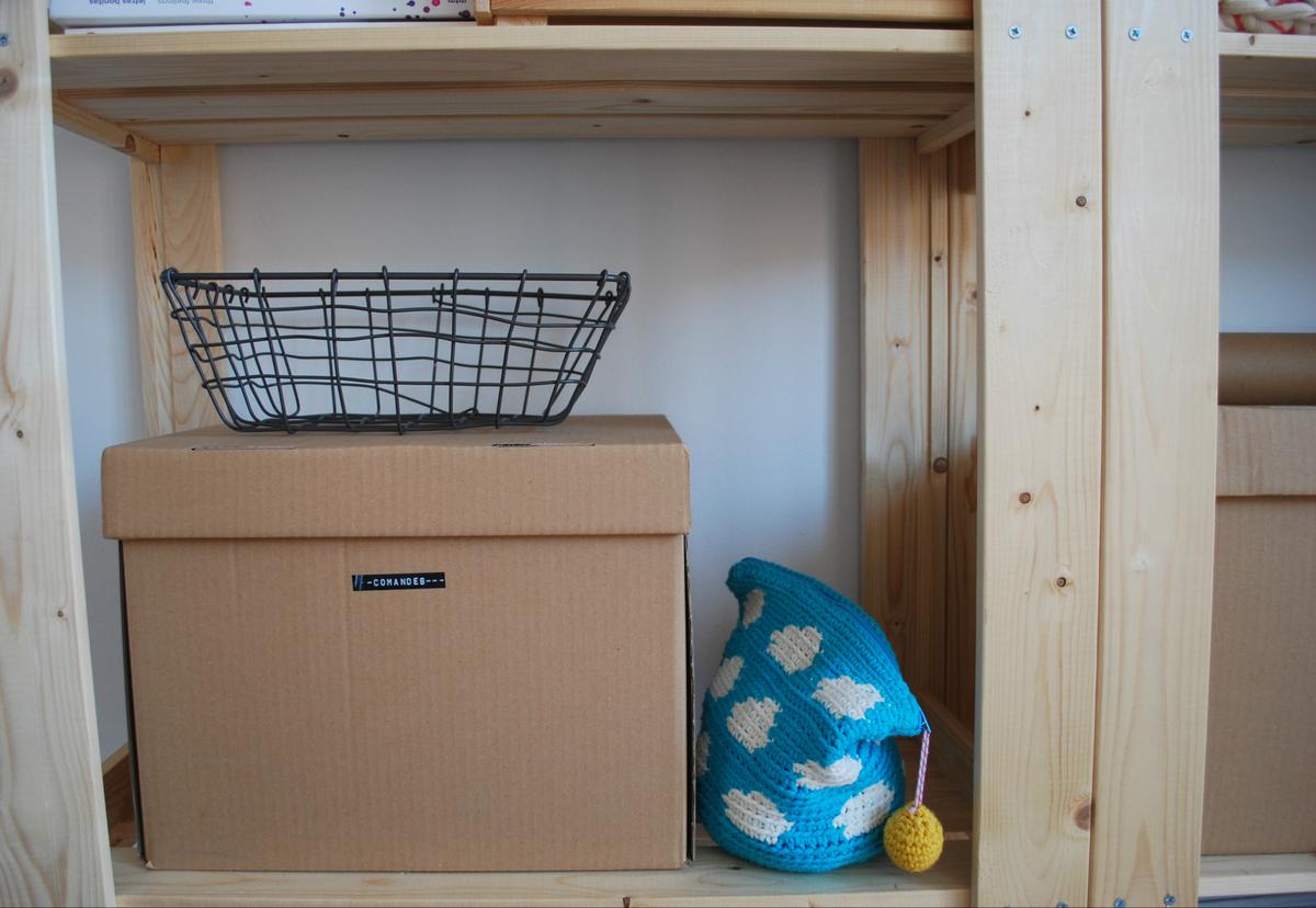 Esta es la parte que tengo que perfeccionar, por que aún falta que me organice un poco, pero de momento he ido poniendo cajas de cartón (que quiero pintar o hacer alguna cosa con ellas) etiquetadas y algunas cajitas más que venían conmigo, pero tengo que darle otra vuelta para que sea lo más práctico posible.