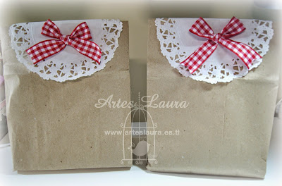 Aqui os enseño una forma super sencilla y molona que hago con algunos de mis paquetes, tan solo es hacer una bolsa en papel craft, hacer un lazo y una blonda y zassss