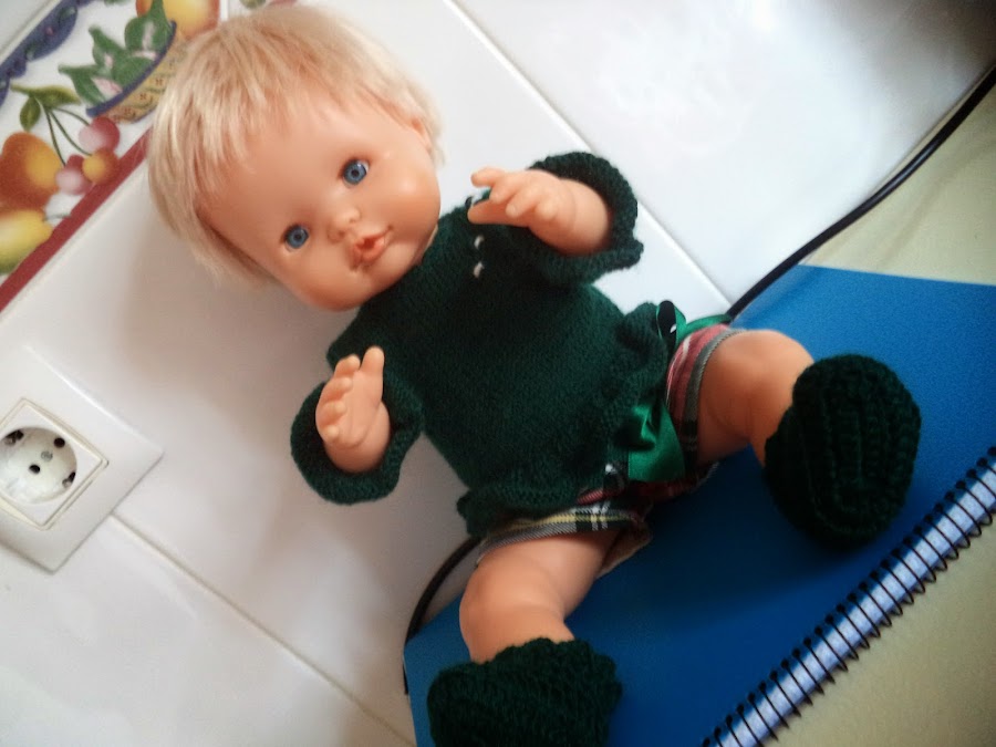 y que os parece este conjuntito ...pantalón de cuadros y jersey verde...unos patuquitos que con el frío que hace no lo podemos dejar andar descalzo ...