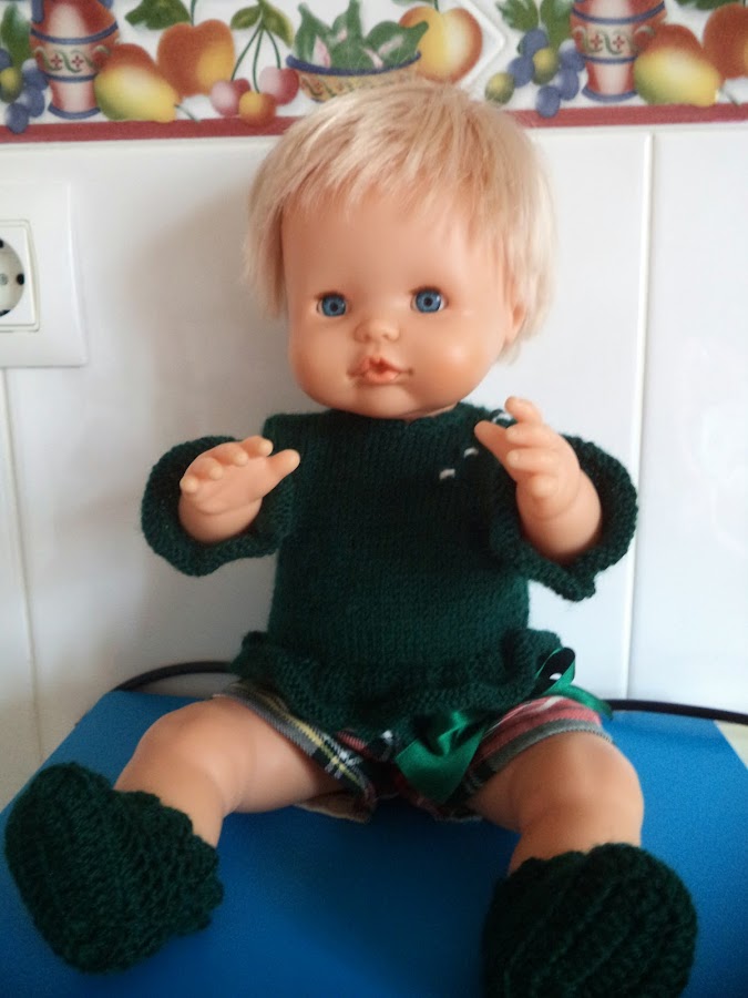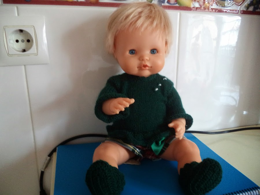 y que os parece este conjuntito ...pantalón de cuadros y jersey verde...unos patuquitos que con el frío que hace no lo podemos dejar andar descalzo ...