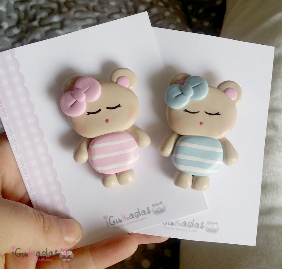 Hoy estoy la mar de contenta, porque por fin os puedo enseñar una cosita muy dulce, las ositas dormilonas !!. Dos broches, que también se pueden hacer como imanes de arcilla polimérica.