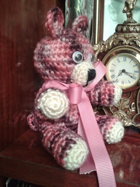 Descubrí en internet unos ositos monísimos para hacerlos con la técnica amigurumis, y me parecieron preciosos. Buscando lanas por los rincones de casa encontré está que compré hace mucho y con la que intenté hacer varias cosas sin terminarlas porque no terminaban de gustarme como me quedaban. El caso es que ya tenía la lana y los ositos pero tampoco me cuadraban mucho en la lana, hasta que buscando y buscando en la red descubrí unos animalitos que casualmente eran osos y que tenían una lana muy similar a la mía, así que me puse manos a la obra y esto es lo que salió.