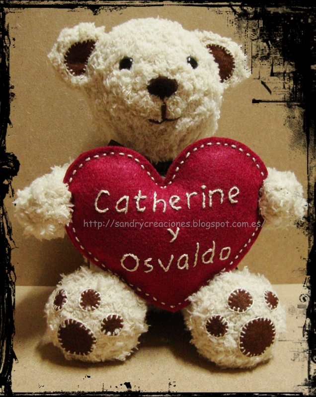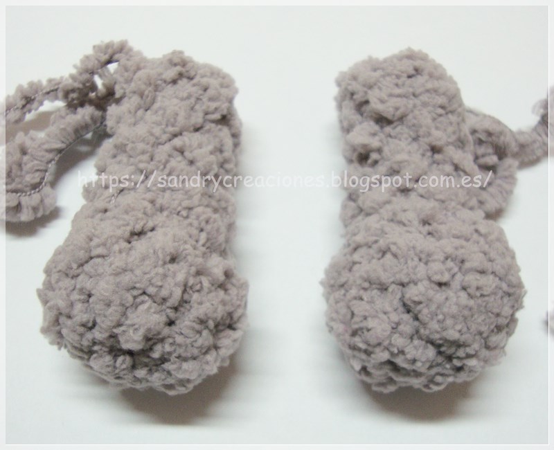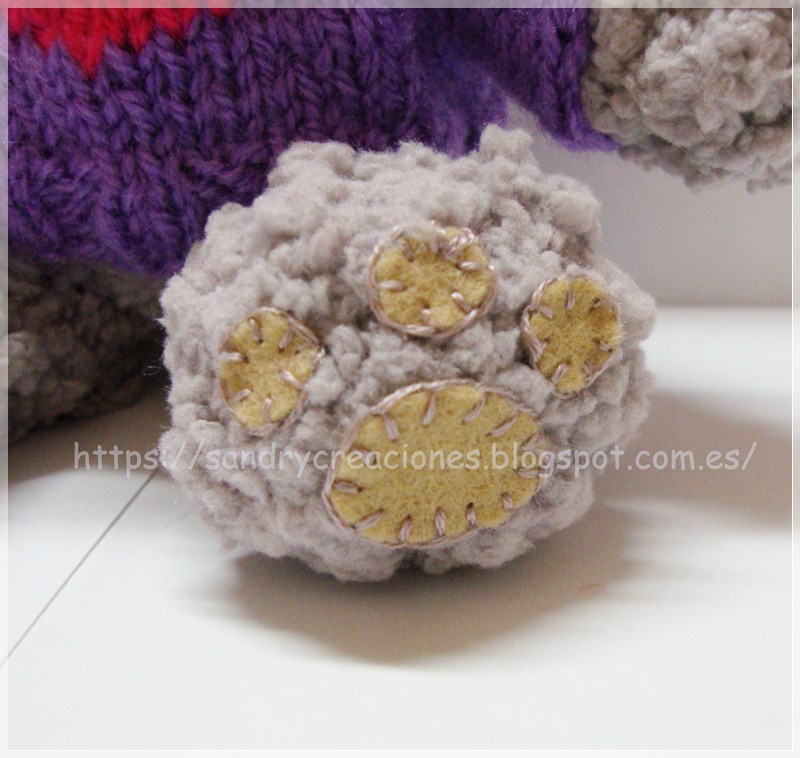 A partir de aquí podéis decorarlo como queráis. Yo decidí hacerle las huellas de los pies y la parte interior de las orejitas con piezas de fieltro y vestirlo con un jersey con un corazón. Así realicé cada parte: