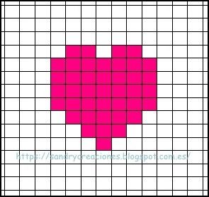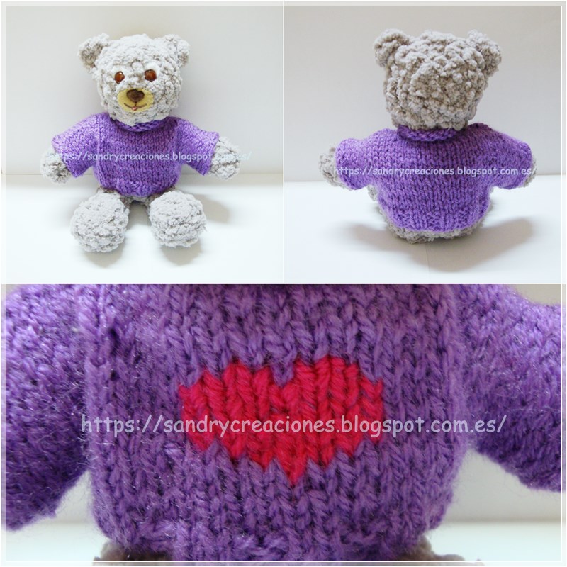 Una vez realizadas las dos partes del jersey, que estarán unidas por un lado del cuello lo cosemos por uno de sus lados, se lo ponemos al osito y una vez puesto cerramos el otro lado. Para finalizar y con el jersey puesto (si queréis lo podéis hacer antes) le bordamos a punto jersey y siguiendo los puntos del jersey un corazón siguiendo este patrón:
