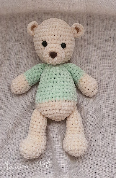 Hoy traigo el patrón de este osito que me pidió mi peque, está realizado por @deynega_yulu y traducido por Amigurumistore. Lo he tejido con Caricia Velvet, una lana que estoy utilizando últimamente porque es muy suave y queda muy bonita.