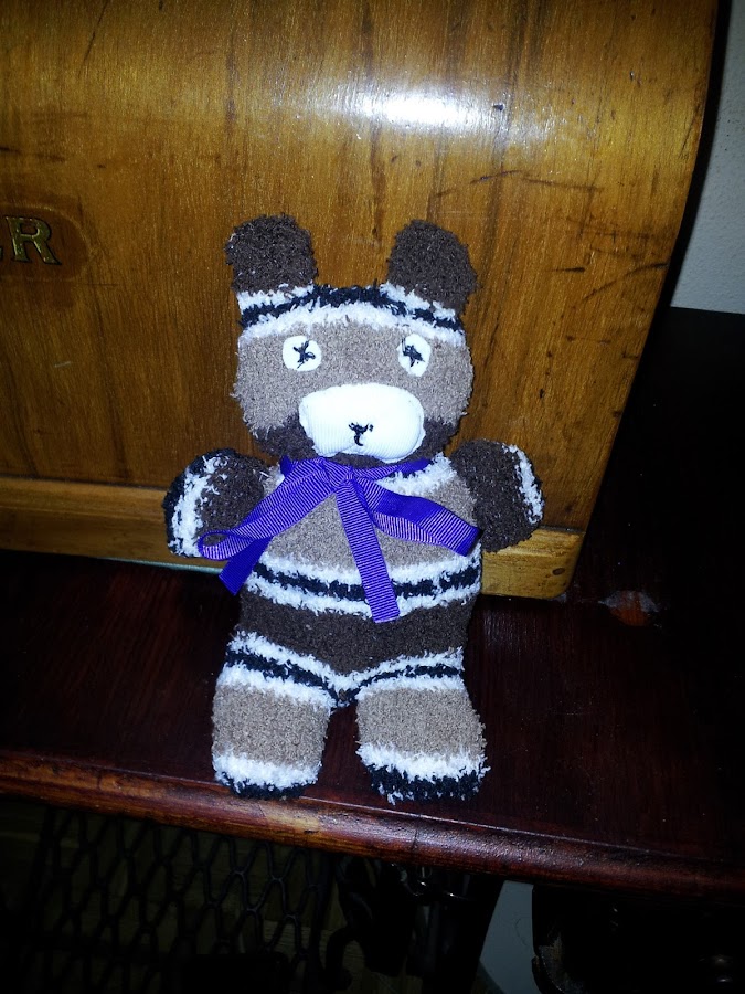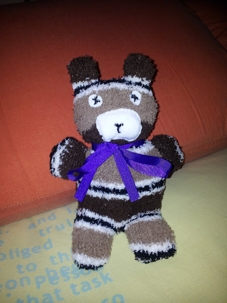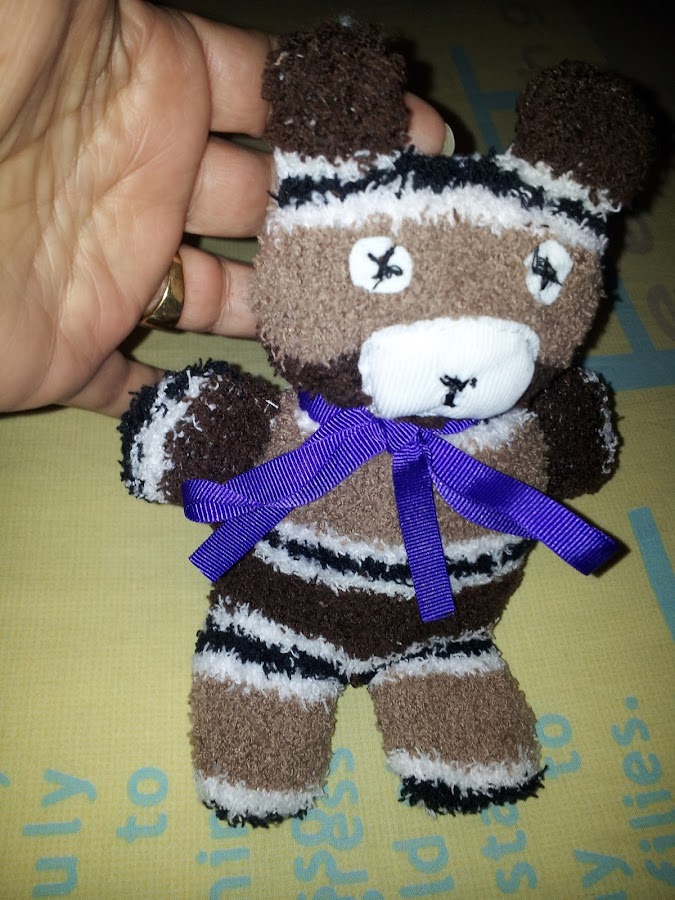 Empiezo por unos ositos realizados con calcetines, esponjosos y bonitos, aprendidos en Corte y Confección, nuestras creaciones