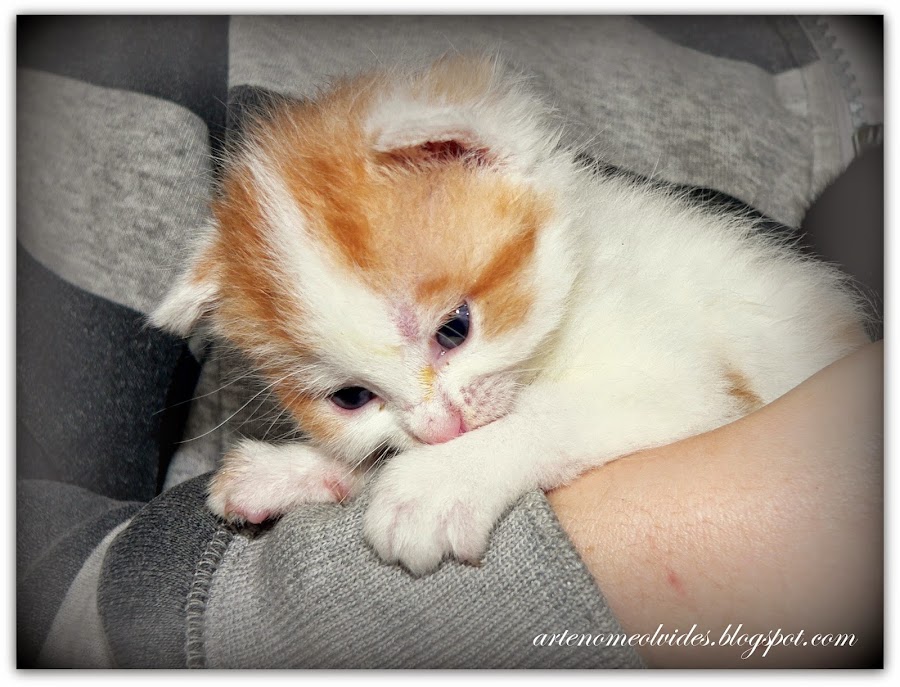 Hace unos dias teniamos una sorpresa en trastero de mi prima, 4 gatitos pequenos!!! Despues su mama se ha mudado solo con dos a otro sitio, pensamos que va a llevar otros dos mas tarde, pero solo venia para comer, ni no se acercaba a pequenos. Teniamos que adoptarlos:). Gracias a dios ya tenian como 3 semanas, pues suficiente para sobrevivir con un humano. Hay que darles la comida por una jeringa. Pobresitos mamiferos todo el tiempo buscan una teta, y chupan nuestros dedos, manos, barbillas:) Tengo ganas llevar uno a casa, pero no se que dice Harry a esta idea? Por otra parte vivimos cerca de una calle donde ya murierion dos nuestras gatitas bajo de las ruedas del coche:( y no quiero pasar por este horror otra vez! Todavia falta tiempo para decidir, tienen que crecer un poquito. Os presento Filemon y Ma?a Mi:)