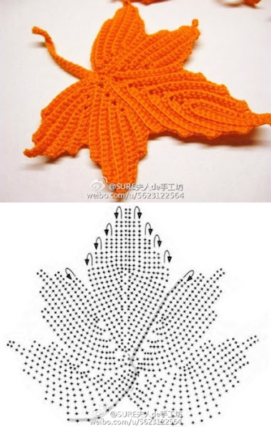 Estas hojitas las tengo desde el año pasado y ya les llegó la oportunidad, las hice de un patrón en inglés, luego encontré un diagrama, no es la misma hoja pero al menos es muy similar.