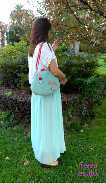 Todavía hace bueno y nuestra estilosa modelo lo luce con un veraniego conjunto. Ya os enseñaremos lo bien que queda también con ropa invernal.