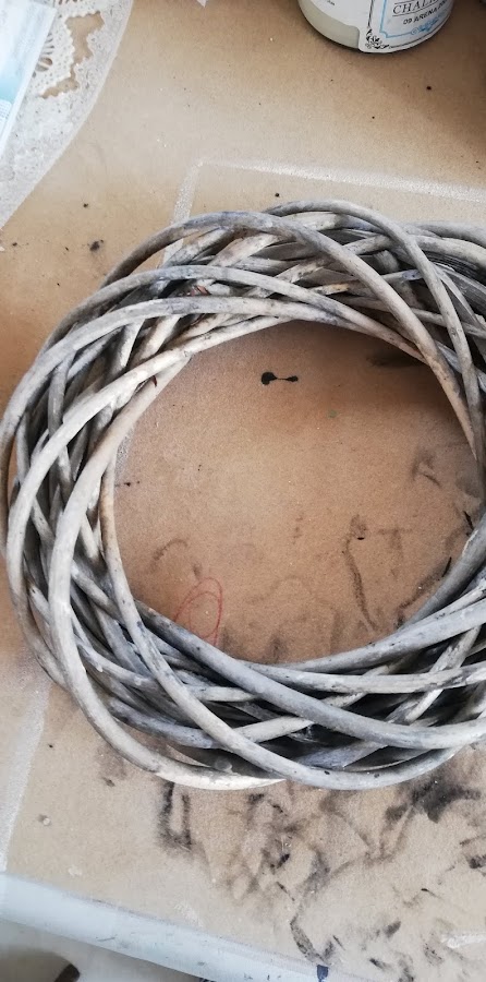 La de meses que lleva esta corona en el jardin...la he rescatado para renovarla....